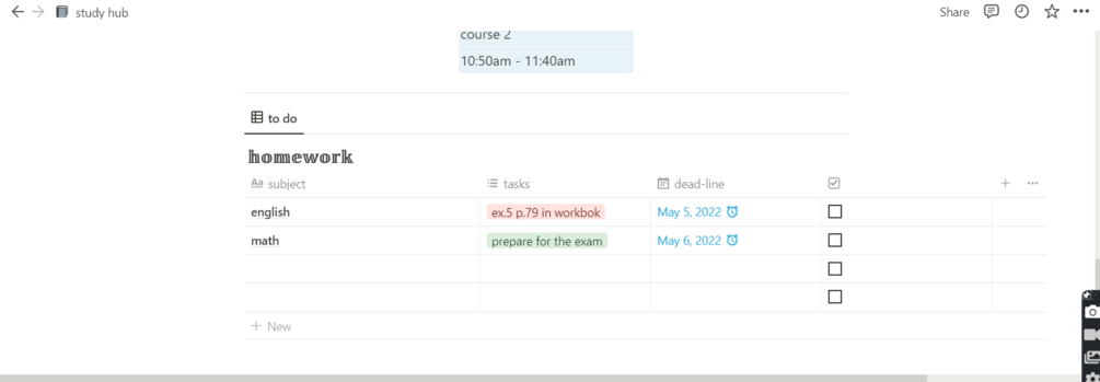 Hi, this is the STUDY HUB template for your notion. I created my first one more than a year ago and now I can finally say that I've created the most comfortable school planner ever! Since covid-19 starts, I've struggled with online school because I didn't have any planners. But with this template, it's piece of cake for me. It is a time saving, easy to use, and organize your projects, deadlines, and homework)